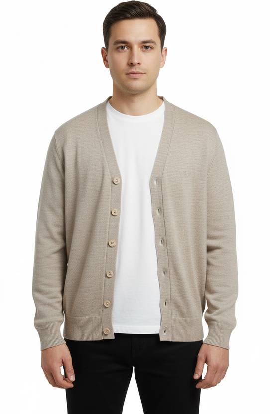 The classic V-neck design with a front button closure and ribbed cuffs & hem adds a touch of elegance, making it suitable for both casual and semi-formal occasions.