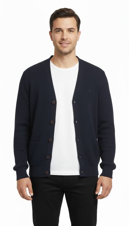 The classic V-neck design with a front button closure and ribbed cuffs & hem adds a touch of elegance, making it suitable for both casual and semi-formal occasions.