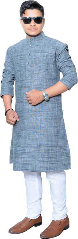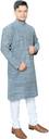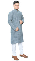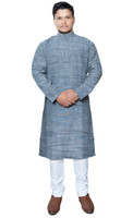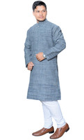 Featuring a subtle, self-designed pattern on the kurta and solid pyjamas, this men's kurta and pyjama set blends traditional charm with modern flair. The kurta's texture adds a layer of sophistication, while the simple, solid pattern on the pyjamas ensures a timeless look. This combination of patterns creates a contrasting yet cohesive look.