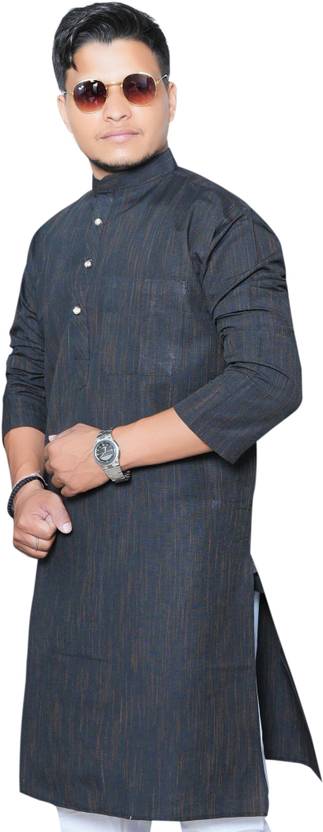 Voniry Men Self Design Straight Kurta (Black)