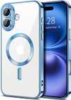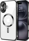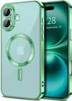 VONZEE Back Cover for iPhone 16 Clear Magnetic Plated Shockproof Soft TPU Electroplated Bumper Case (Green, Transparent, Magnetic Case, Silicon, Pack of: 1)