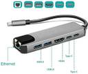 1. Massive Expansion: This Typc C to HDTV hub provides 1 x 87W PD power supply port, 1 x HD Multimedia Interface, 1 x Ethernet port, 1 x USB C data port and 2 x USB port.