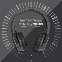 Designed to support extended listening, these over-ear headphones operate on a polymer lithium battery with a capacity of up to 250 mAh and include Type-C fast charging. A full charge can support up to 12 hours of playback, while a brief charge, up to 10 minutes, can ensure up to 90 minutes of use, making these headphones ideal for travel or busy days. Charging completes in around 1.5 hours, and standby time reaches up to 120 hours. Furthermore, powered by a supply of up to 5 V DC, the integrated USB charging port and included cable support convenient charging for daily entertainment, work tasks, and on-the-go use.