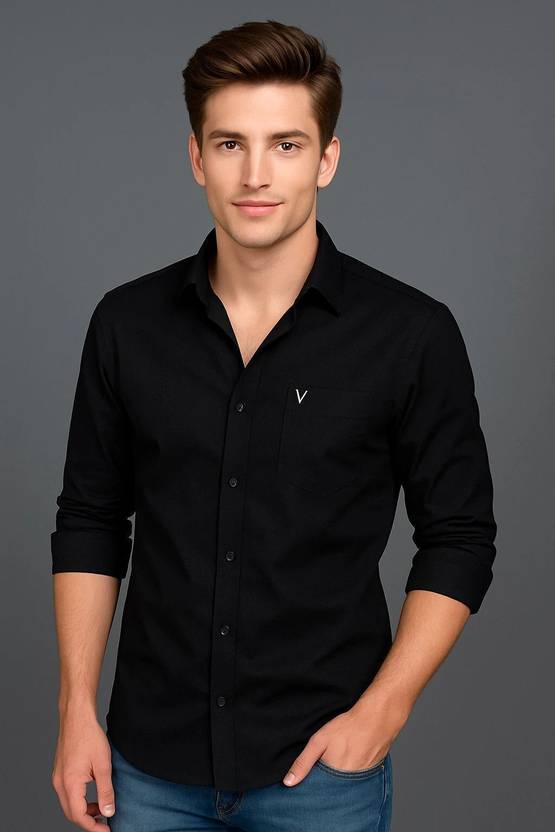 Pair it with tailored trousers and a blazer for a sleek office look, or team it with jeans or chinos for a sophisticated yet relaxed ensemble. The versatility and timeless appeal of this black cotton shirt make it an essential piece in every wardrobe.