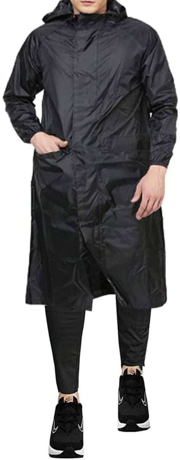 It is made of single coated layered semi-Nylon Fabric. It has tape on the back of stitching to protect water from entering inside during rain. The dress that you wear will not get wet in the rain. It is foldable, light weight, waterproof with hooded rain coats for men Recommended Product will not sink water inside . It is good for heavy rain. No water leakage inside. It provides leakage protection while during roaming in rain, riding a bike in moderate to heavy rain. It can be used while riding cycle. It comes with a carry bag cover for keeping coat.