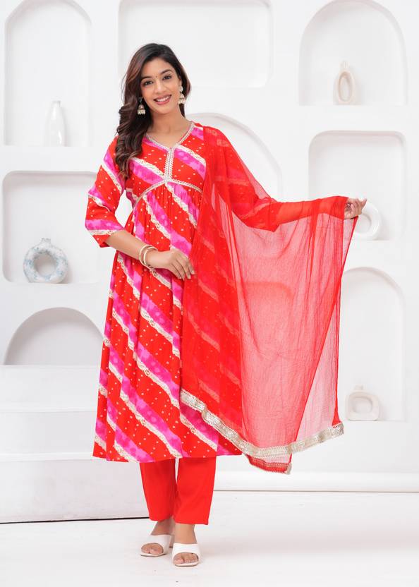 A-line kurta hai printed hai cottan hai Embroidered work with dupatta set