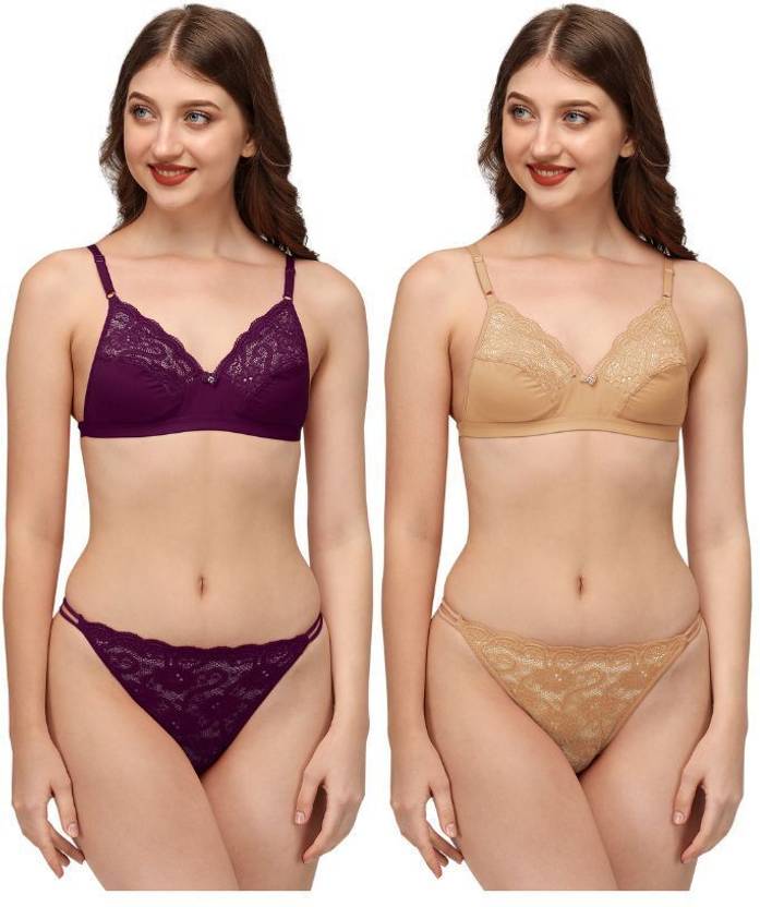 Bra and Panty Set for Women and Girls Sexy Lingerie for Honeymoon Sex|Sexy Lingerie|Cotton Non- Padded Non-Wired Bra Panty Set Pack of 2 Multicolor