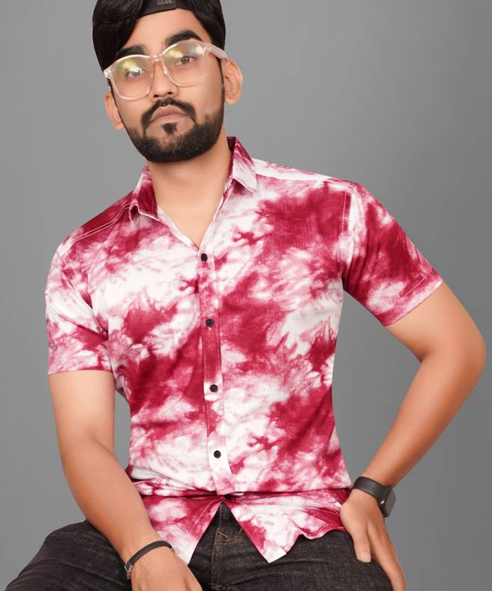 Voroxy Men Dyed/Ombre Casual Maroon, White Shirt