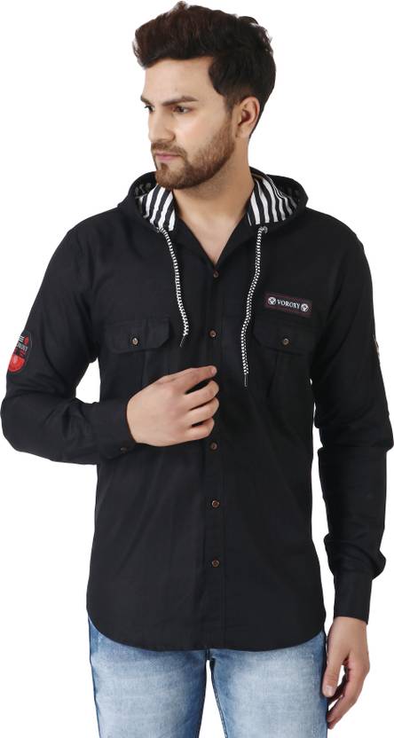 Voroxy Men Regular Fit Solid Hood Collar Casual Shirt