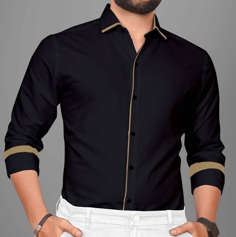 Black Solid Formal shirt, has a Spread collar, button placket, pocket Available , Full sleeves, curved hem, regular fit shirt, smooth and breathable fabric, regular length, Cotton Blend Fabric