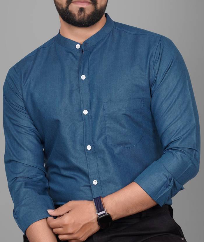 VoroxyΒ Men Regular Fit Solid Mandarin Collar Casual Shirt