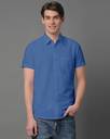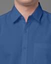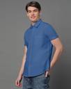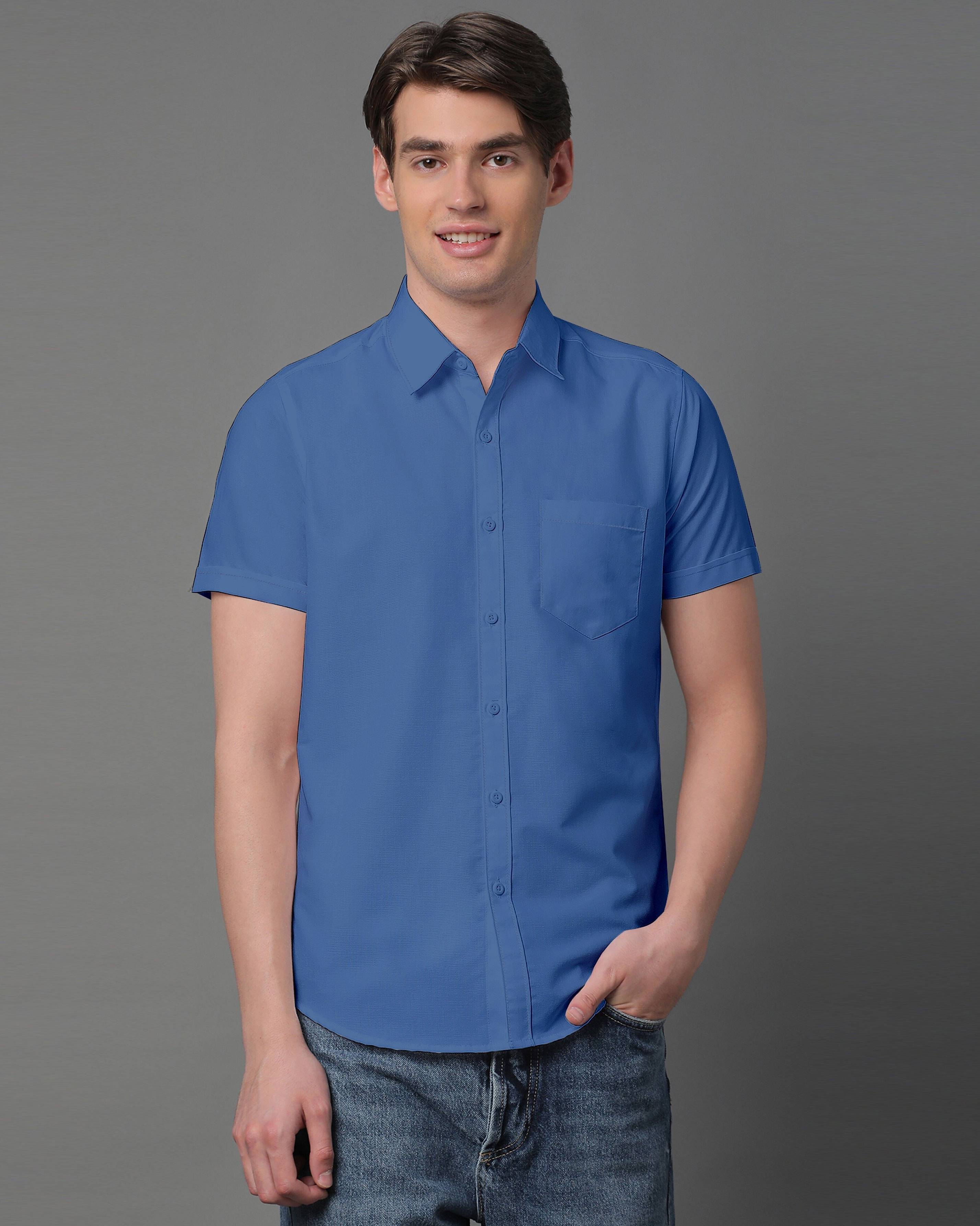 Oxford Blue solid cotton blend formal shirt, has a spread collar, button placket, one patch pocket, half sleeves, curved hem, regular fit shirt, smooth and breathable fabric