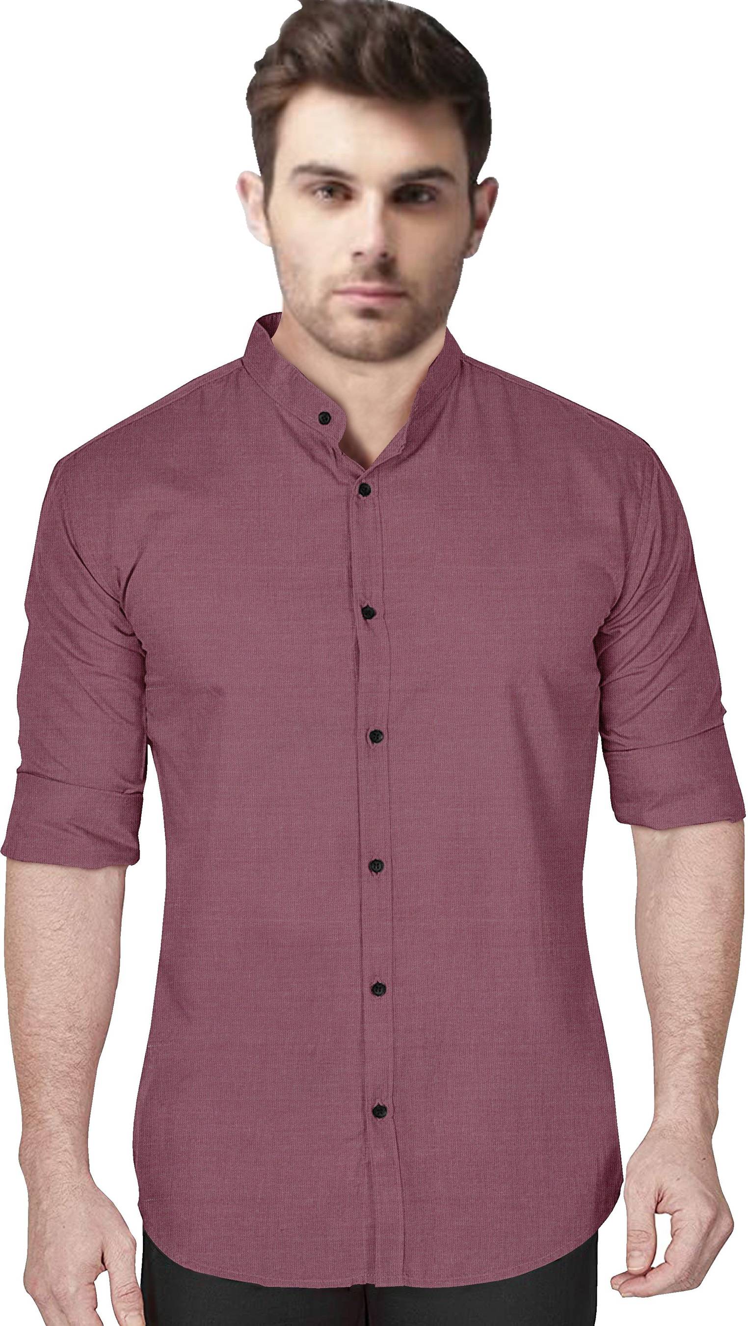 VoroxyΒ Men Regular Fit Solid Mandarin Collar Casual Shirt
