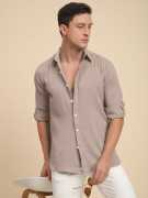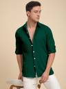 Voroxy Men Solid Casual Dark Green Shirt