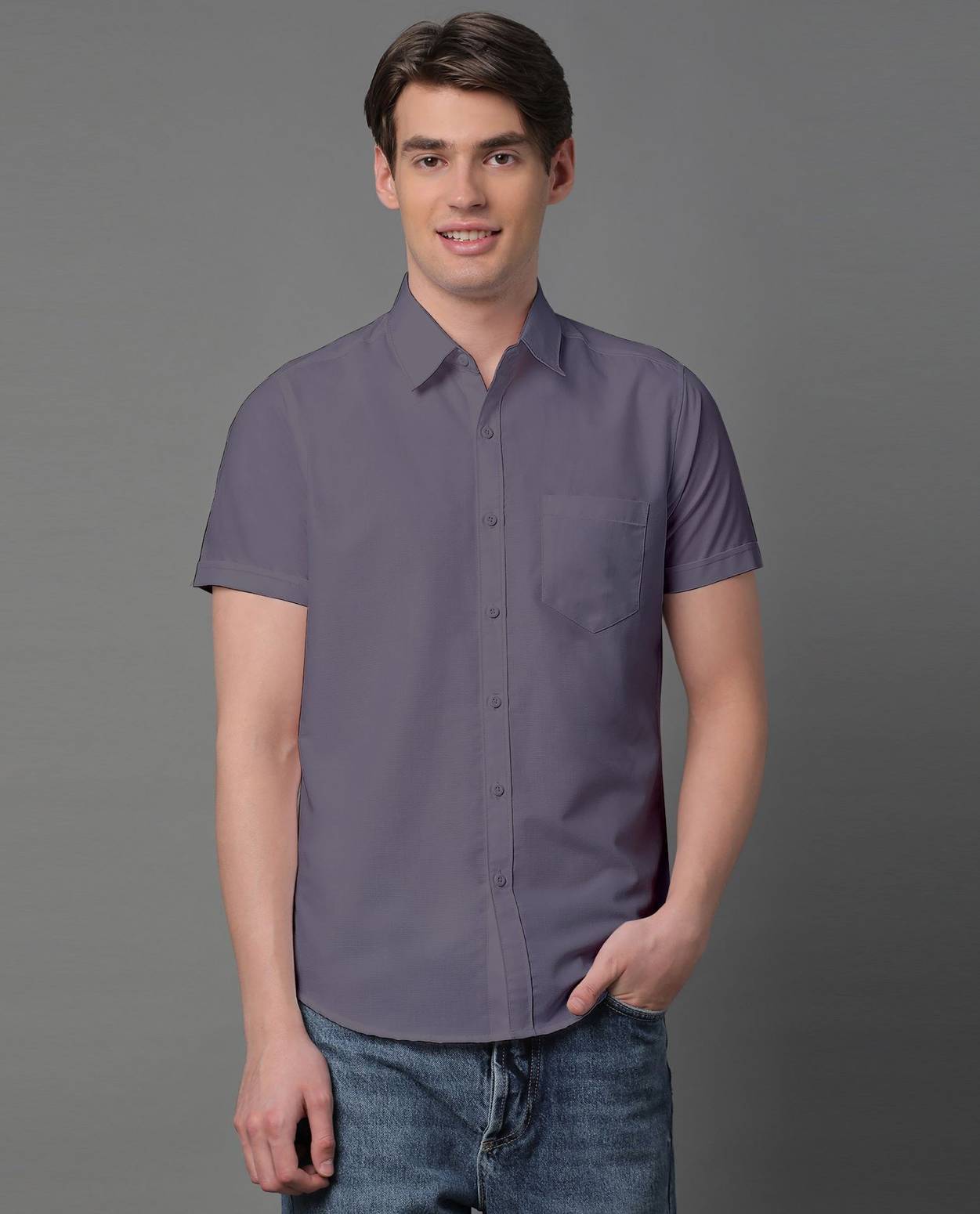 Voroxy Men Solid Casual Grey Shirt