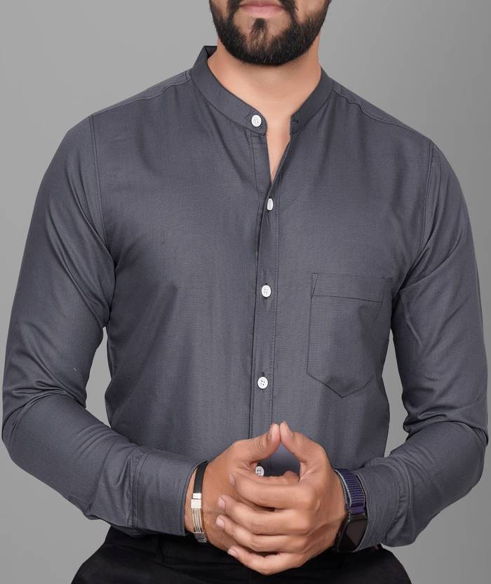 VoroxyΒ Men Regular Fit Solid Mandarin Collar Casual Shirt