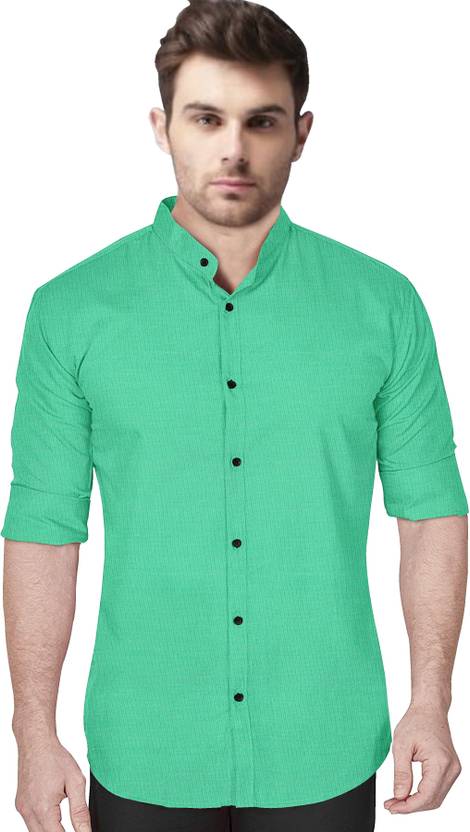VoroxyΒ Men Regular Fit Solid Mandarin Collar Casual Shirt