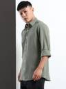 Voroxy Men Solid Casual Light Green Shirt
