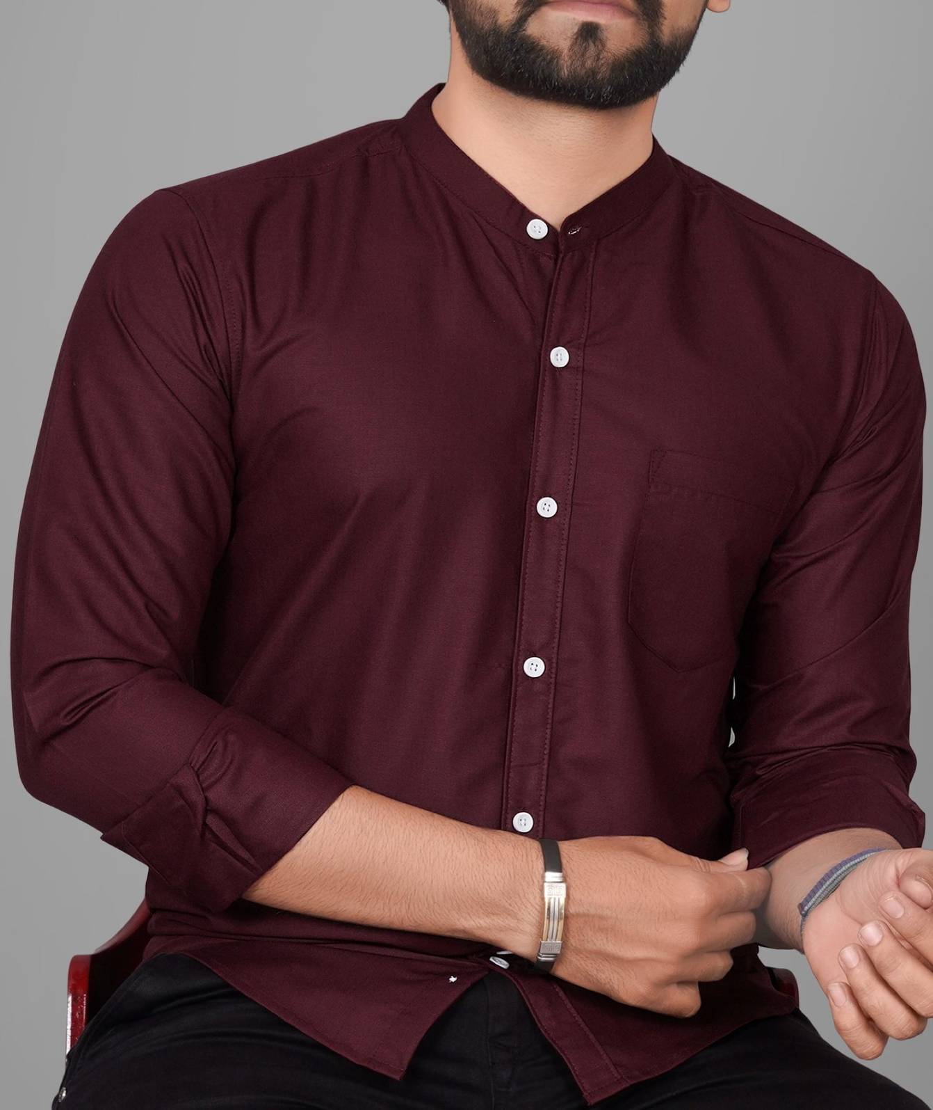 Voroxy Men Regular Fit Solid Mandarin Collar Casual Shirt