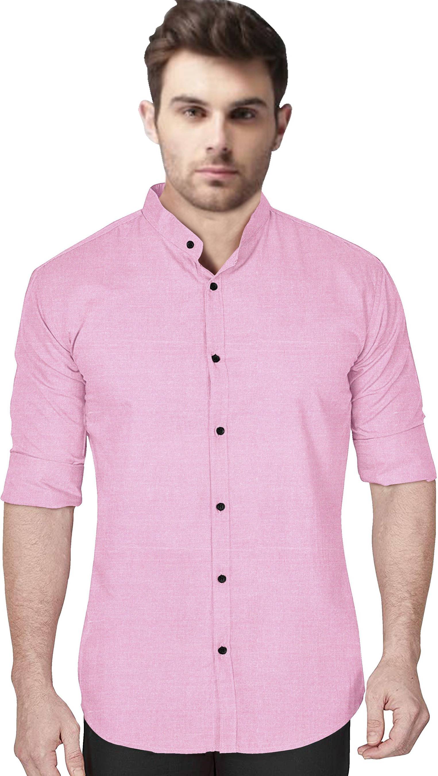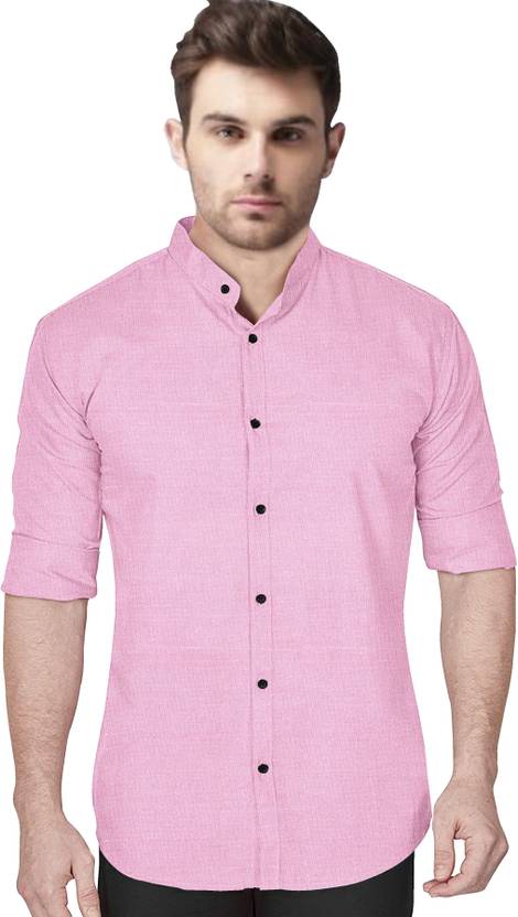 VoroxyΒ Men Regular Fit Solid Mandarin Collar Casual Shirt