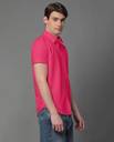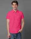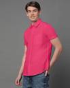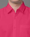 Dark Pink solid cotton blend formal shirt, has a spread collar, button placket, one patch pocket, half sleeves, curved hem, regular fit shirt, smooth and breathable fabric