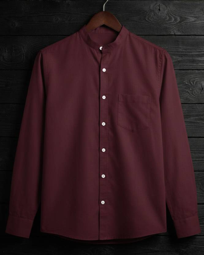 Voroxy Men Regular Fit Solid Mandarin Collar Casual Shirt