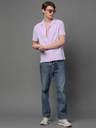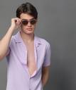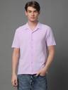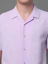 Lavender self design popcorn casual shirt, has a cuban collar, button placket, no pocket, half sleeves, straight hem, loose fit shirt, smooth and breathable fabric