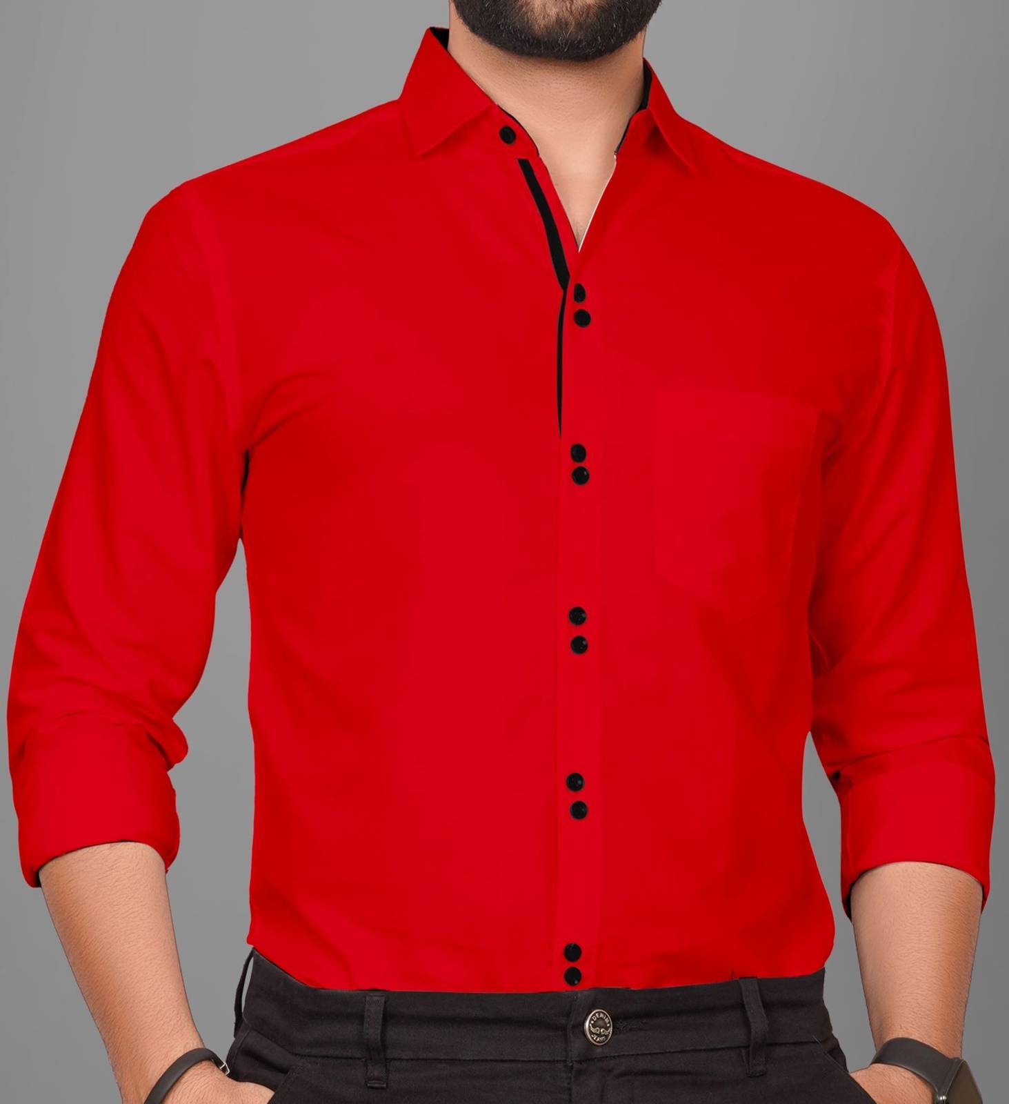 Red Solid Formal shirt, has a Spread collar, button placket, pocket Available , Full sleeves, curved hem, regular fit shirt, smooth and breathable fabric, regular length, Cotton Blend Fabric