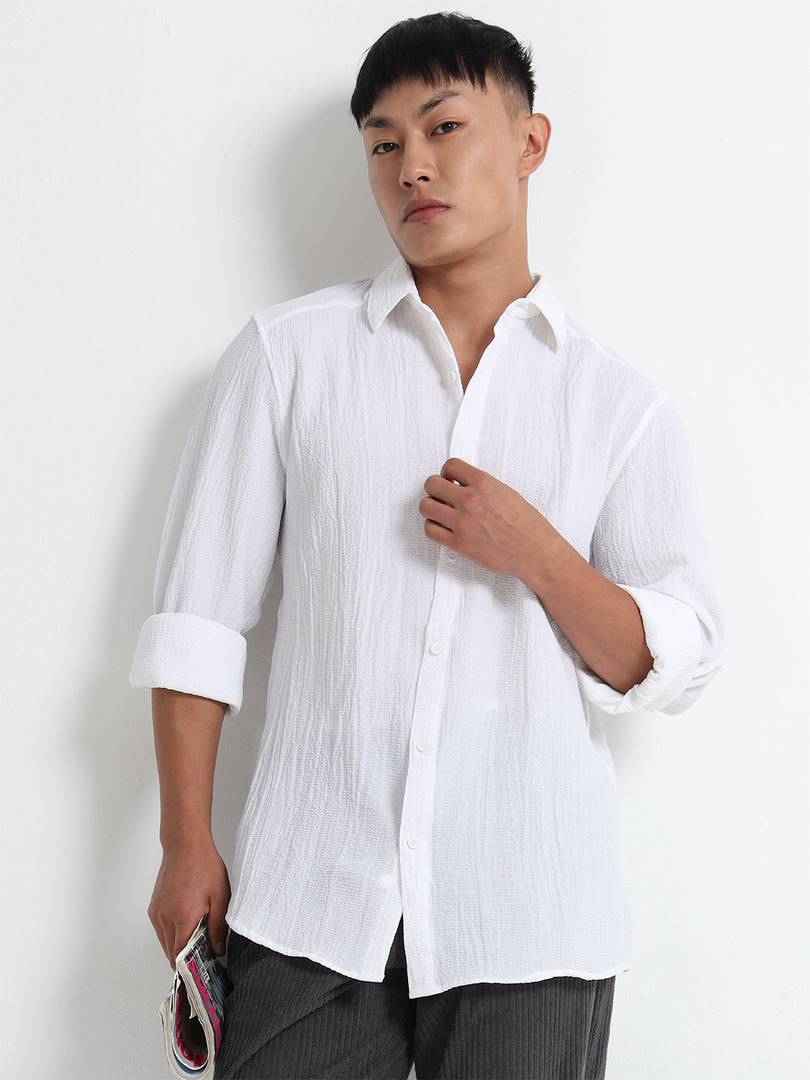 Voroxy Men Solid Casual White Shirt