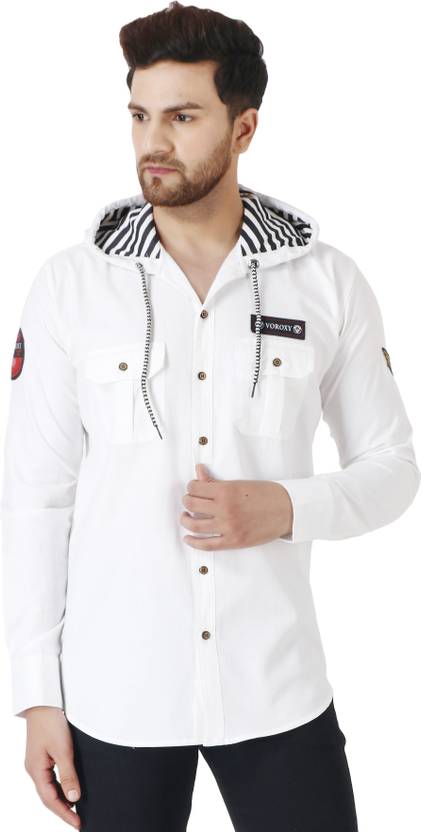 Voroxy Men Regular Fit Solid Hood Collar Casual Shirt