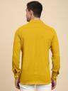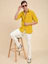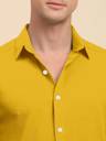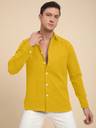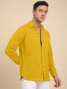 Mustard solid casual shirt, has a spread collar, button placket, no pocket, full sleeves, curved hem, loose fit shirt, smooth and breathable fabric