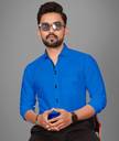 Sea Blue Solid Formal shirt, has a Spread collar, button placket, pocket Available , Full sleeves, curved hem, regular fit shirt, smooth and breathable fabric, regular length, Cotton Blend Fabric