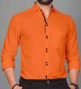 Orange Solid Formal shirt, has a Spread collar, button placket, pocket Available , Full sleeves, curved hem, regular fit shirt, smooth and breathable fabric, regular length, Cotton Blend Fabric