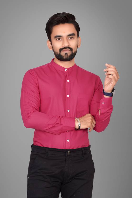 Voroxy Men Solid Formal Pink Shirt