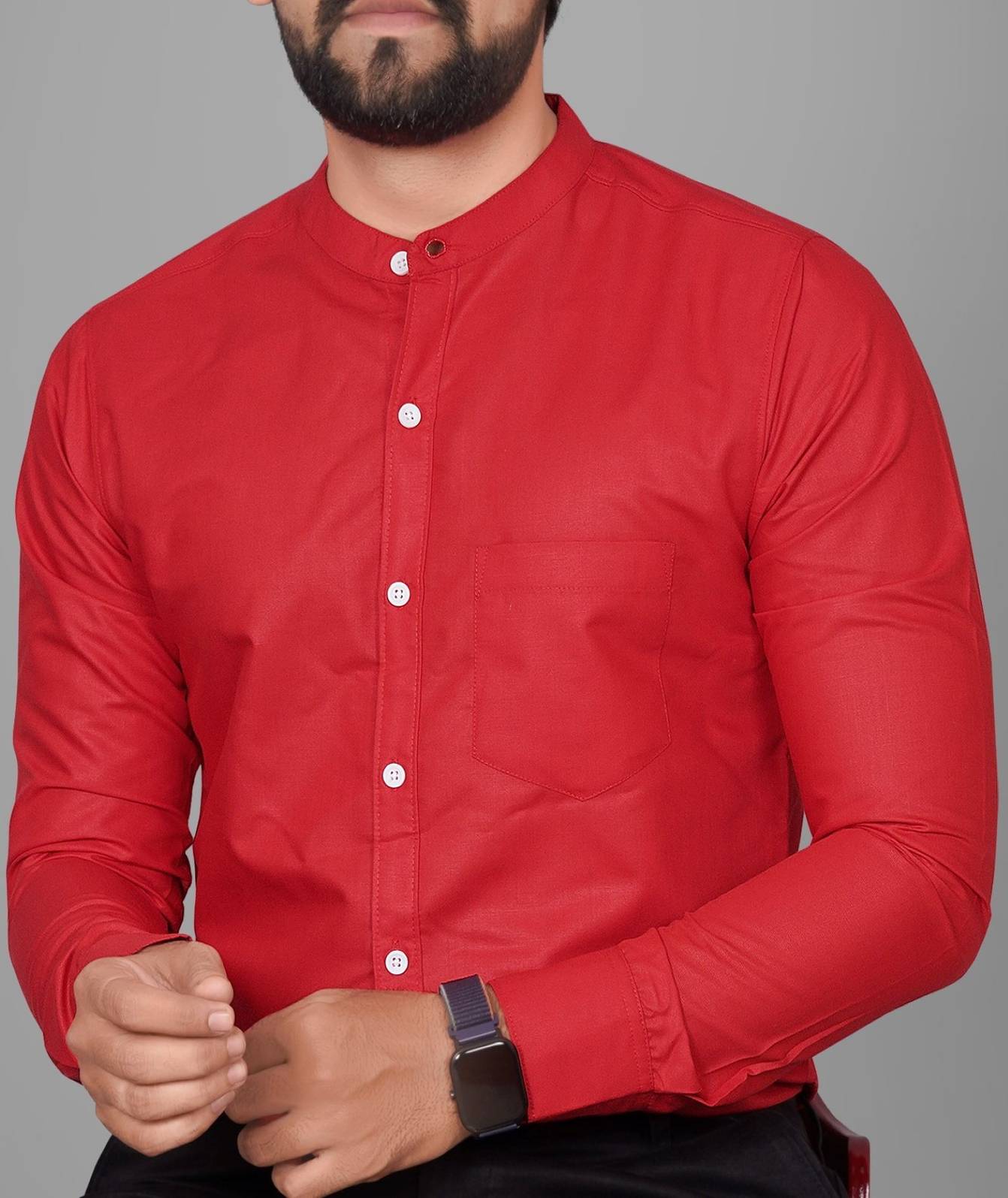VoroxyΒ Men Regular Fit Solid Mandarin Collar Casual Shirt