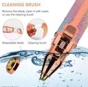 The sharp high-carbon fine-sharpened blade of the women hair remover provides a perfect shaving effect on your skin without causing any pulling, scratching, redness or irritation, and is gentle on all skin types. IPX7 Waterproof stainless steel means you can use eyebrow remover handy trimmer razor even while you are taking a shower. Recommended by dermatologists, eyebrow painless hair remover trimming head is hypoallergenic and gentle on all skin types. 8000 revolutions per minute, faster than the vruta average speed of ordinary eyebrow hair removal trimmer. Apply to handy eyebrows, upper and lower lips, cheeks, chin, neck, armpits, bikini, arms and legs, etc. quickly remove peach fluff, and give you comfortable touch. USB interface fit mobile power, laptop computers, car chargers or other USB charging devices.