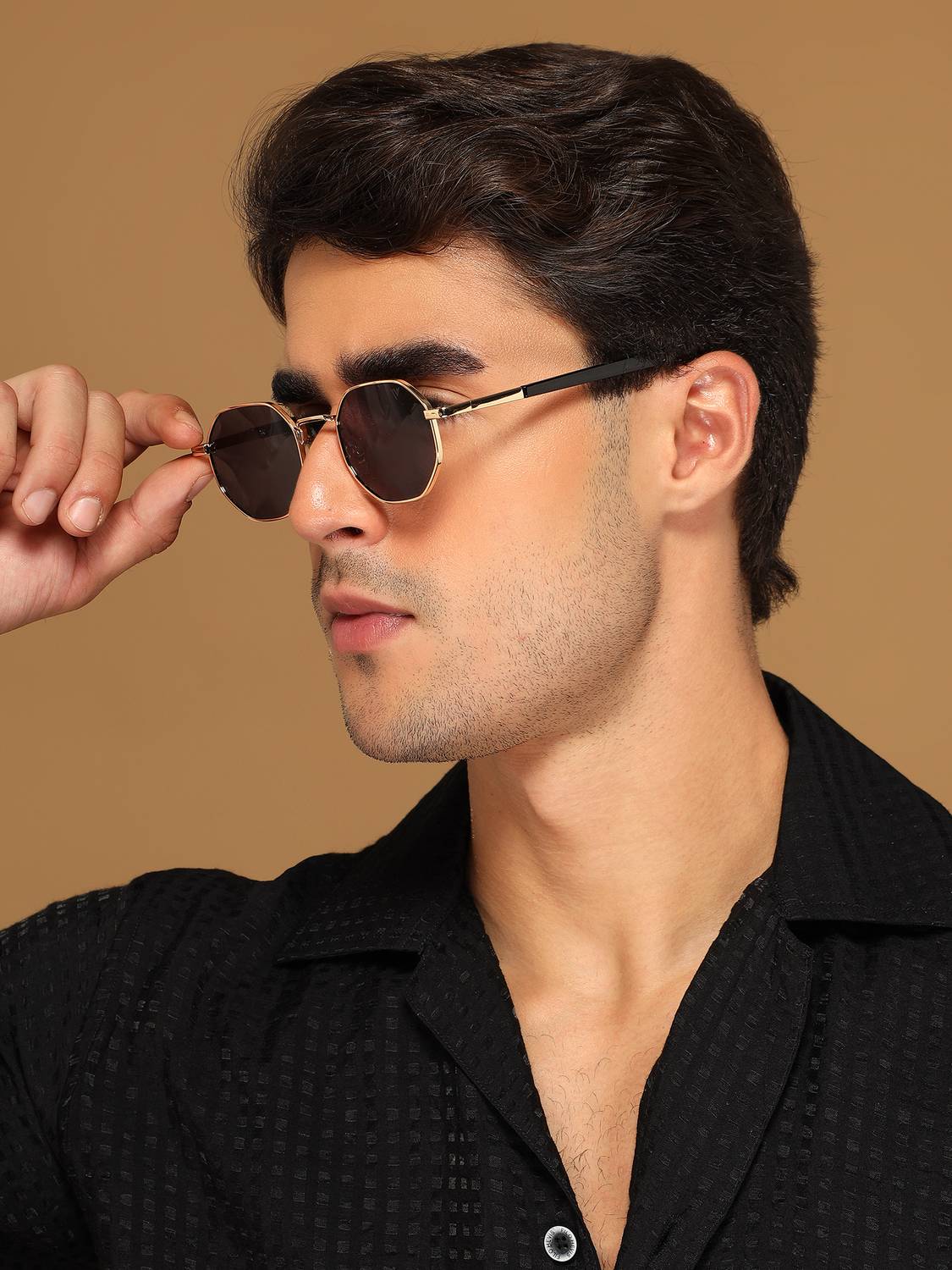 VOYAGE Round Sunglasses (For Men & Women, Black, Golden)