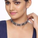Temple design choker necklace. Made from brass and oxidised silver plated. Wear with a casual summer dress.