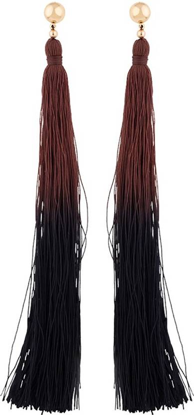 Dyed tassels drop earrings with yellow gold plating. A good match for casual looks of all types.