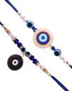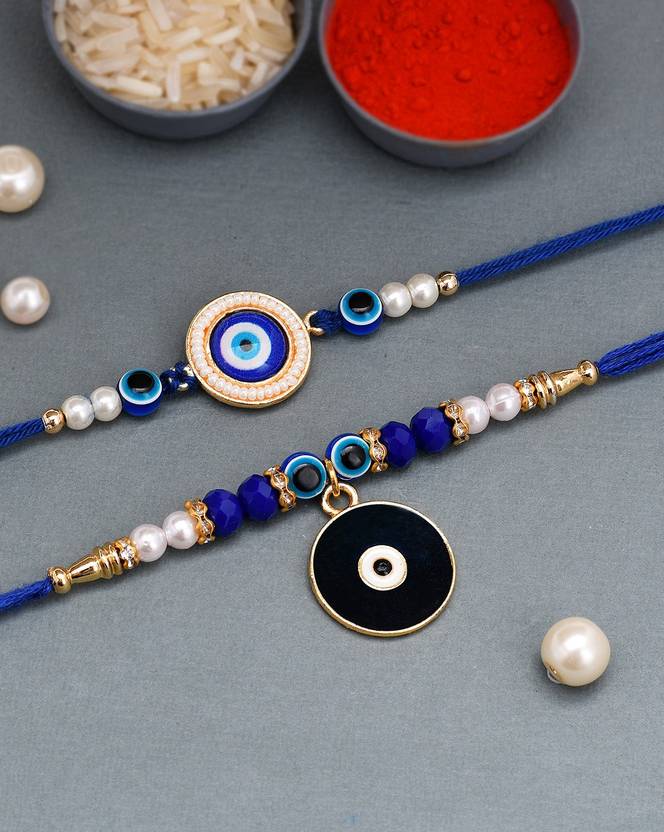 This Rakshabandhan celebrate the emotional bonding of brother-sister relationship by tying this fancy Evil Eye Motif rakhi around his wrist . The rakhi combo will add to the zest and happiness of this festival season.Voylla brings you an exclusive collection of Rakhis to celebrate the cherished bond between siblings. Our wide range includes Sterling Silver Rakhis,Brass Rakhis,traditional Kundan and Meenakari Rakhis, contemporary bracelet Rakhis, and unique designs like Om, Evil Eye, and Peacock Rakhis. Whether you�re looking for a Rakhi with sweets, chocolates, or dry fruits, or searching for the perfect return gift for your sister, Voylla has it all.