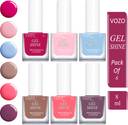 VOZO Boss of Gloss Shine Ultra Lasting Nail Polish Combo of 6 Bottles(VT-2) Magenta, Pink, Soft Blue, Blast-off Bronze, Peaches Pink, Deep Taupe (Pack of 6)