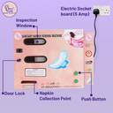 Featuring an inspection window, this sanitary pad dispensing machine allows for easy monitoring of pad availability. Equipped with an electric socket board, it ensures a convenient power connection for smooth operation. Built with a secure door lock, it helps maintain hygiene and safety by preventing unauthorised access. Incorporating a designated napkin collection point, it provides an accessible space for users to retrieve sanitary pads efficiently.