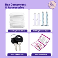 Including sanitary napkins, this dispensing machine ensures immediate usability upon installation. Built with wall plugs and screws, it offers secure mounting on walls, providing stability and durability. Sporting a door lock with keys, it enhances security, restricting unauthorised access while allowing authorised personnel to refill pads when needed. Featuring a user guide manual, it offers clear instructions for setup and operation, aiding in a smooth user experience.