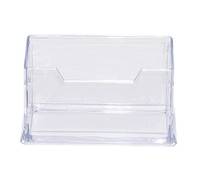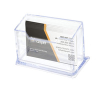 Boasting construction from heavy cast clear acrylic, this card holder is built to last while maintaining a polished appearance. Moreover, the sturdy material provides stability, preventing tipping or sliding on smooth surfaces. Acrylic is also resilient against scratches and easy to clean, ensuring that this holder retains its clarity over time. Additionally, the material supports repeated use and accommodates multiple cards securely, offering a combination of durability and practicality.
