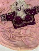Vraggi Embellished, Embroidered Bollywood Chiffon Saree (Maroon)