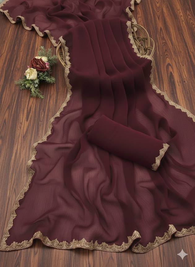 Vraggi Self Design Bollywood Chiffon Saree (Maroon)