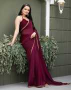 Elevate your ethnic charm with this elegant chiffon saree from Fendy. Crafted from lightweight chiffon fabric, this saree features a rich solid color with a beautifully detailed lace border, adding a touch of sophistication. Perfect for festive occasions, parties, and weddings, this saree drapes effortlessly to accentuate your silhouette. Pair it with statement jewelry and a matching blouse to complete the look.