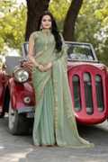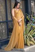 Solid/Plain Bollywood Chiffon, Pure Silk Saree (Blue)