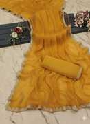 Vraggi Self Design Bollywood Chiffon Saree (Mustard)