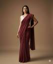 Vraggi Solid/Plain Bollywood Lycra Blend Saree (Maroon)